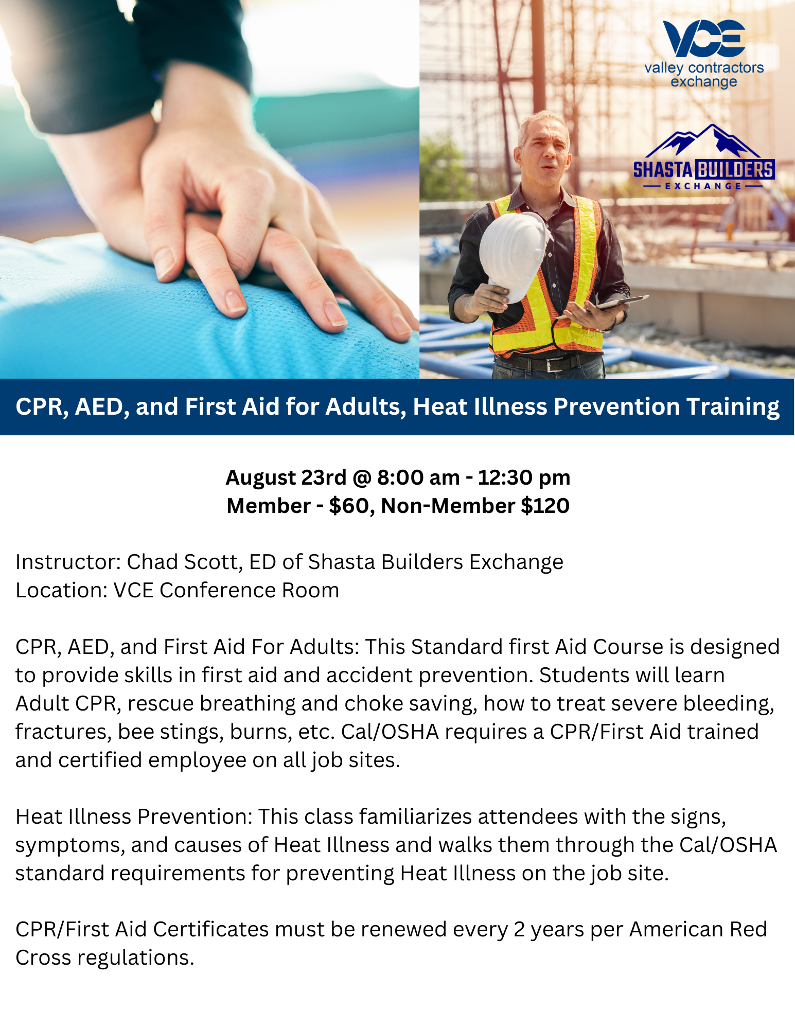 CPR, AED, First Aid and Heat Illness Prevention Training