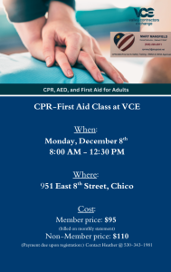 First Aid- CPR Certification Class at VCE Office- Monday, December 8th